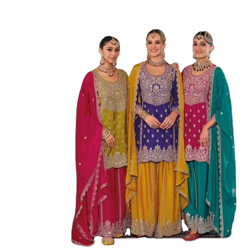 ชุดเดรสปักลายสไตล์ปากีสถานอินเดียคุณภาพสูง คอลเลคชั่นใหม่สำหรับฤดูร้อน เหมาะสำหรับงานปาร์ตี้ ชุดชาราร่า 3 ชิ้น แฟชั่นสุดฮิตสำหรับสุภาพสตรี