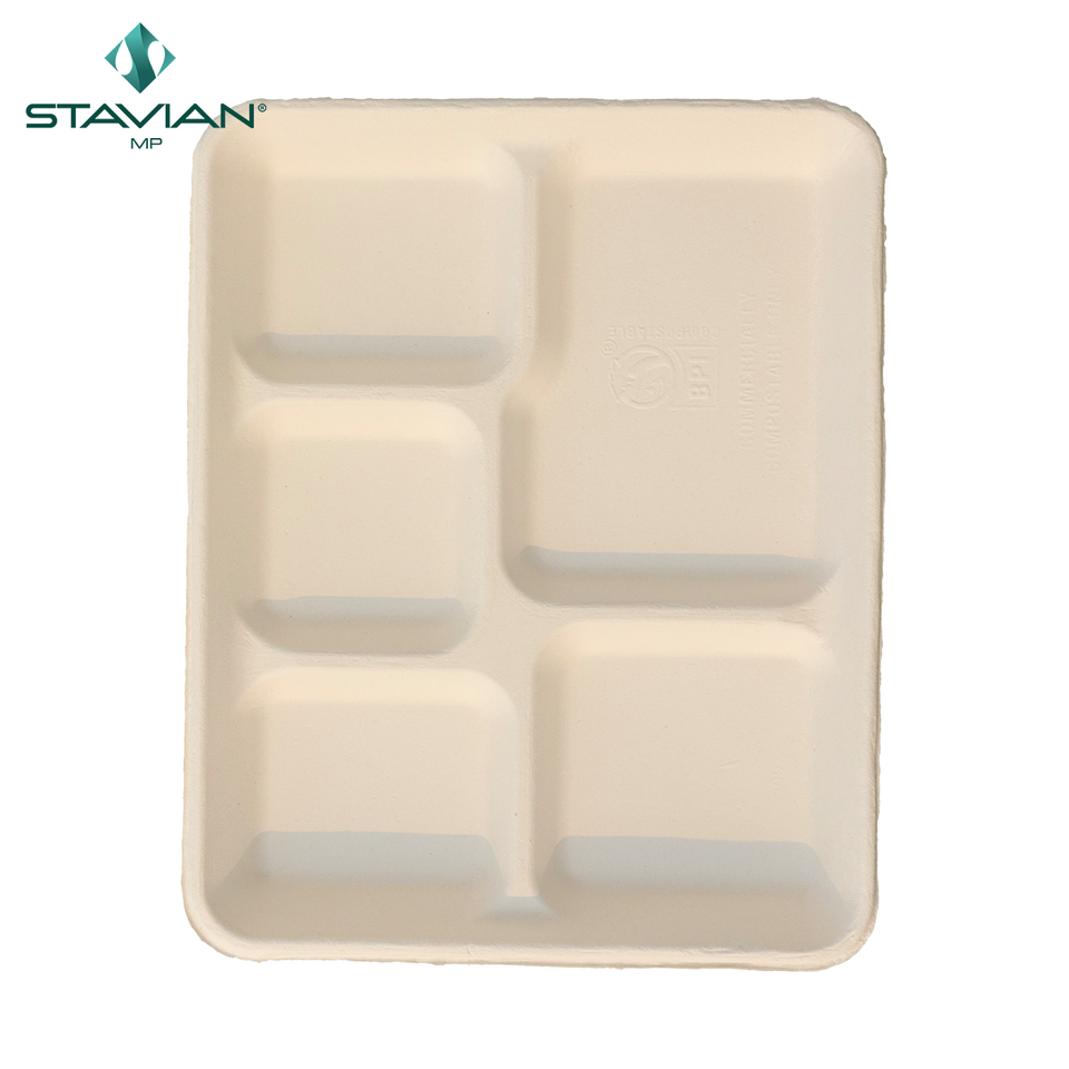 ถาดใส่อาหารทำจากชานอ้อยแบบย่อยสลายได้530มล. แบบ100% ย่อยสลายได้5ช่อง