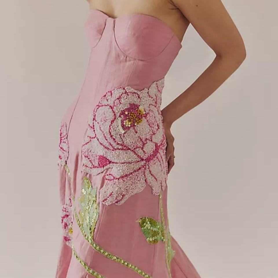 ชุดเดรสยาวทรงเข้ารูปคุณภาพสูงสำหรับผู้หญิง ดีไซน์หรูหรา เซ็กซี่ เหมาะสำหรับงานปาร์ตี้ แบบไร้สายรัดไหล่ ตกแต่งด้วยโครงปลา ชุดราตรี