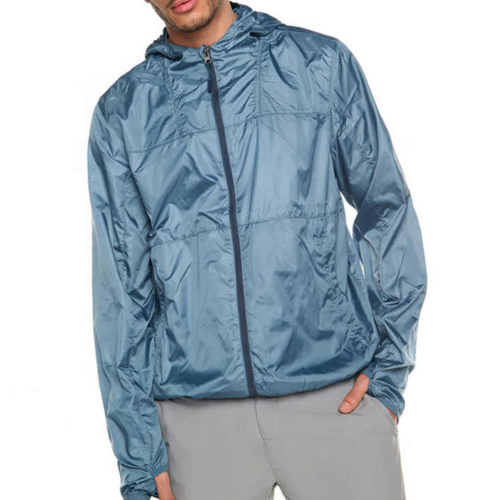 เสื้อแจ็กเก็ตกันลมมีฮู้ดของผู้ชายผ้าไนลอนระบายอากาศได้น้ำหนักเบาใช้กลางแจ้งกีฬาวิ่งกันน้ำติดโลโก้ได้ตามต้องการ