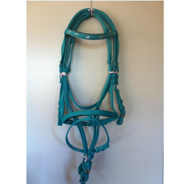 High Quality Nylon Horse Bridle With Matching Reins,SS Buckles,SS Eyelets and Horse Ribbon on All Sides