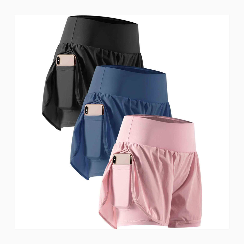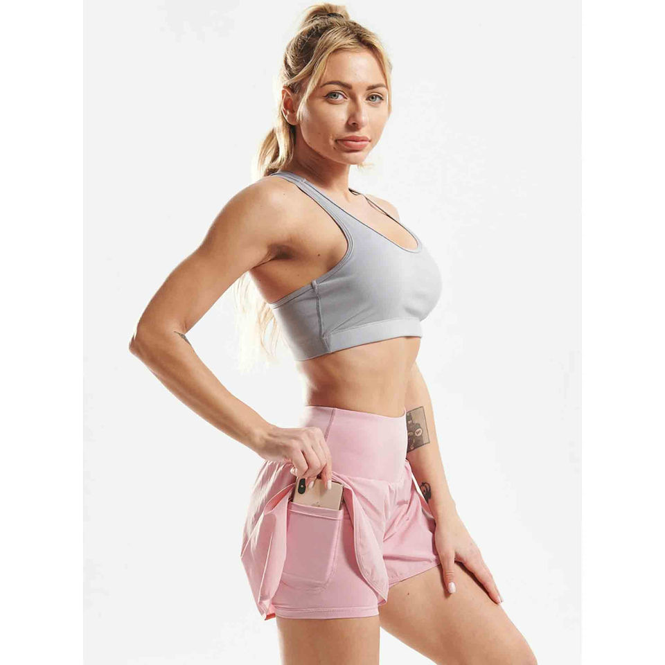 กางเกงขาสั้นโยคะผ้าสแปนเด็กซ์ผ้าไนลอนผสมผ้าสแปนเด็กซ์ความยาวด้านหลังสูงแบบไม่มีตะเข็บด้านหน้า