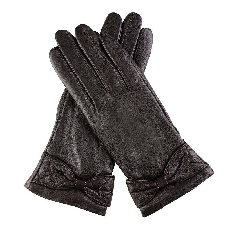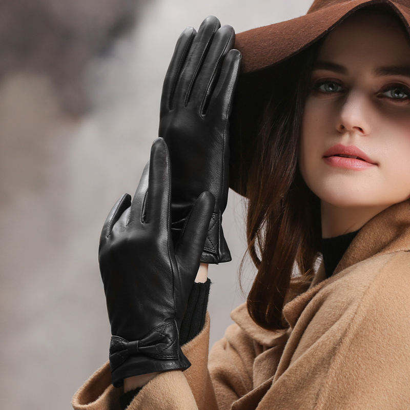 ถุงมือไนลอนสำหรับผู้หญิงถุงมือสีดำมีโบว์ผูกขนสัตว์สีดำเป็นมิตรต่อสิ่งแวดล้อมสำหรับฤดูหนาวขี่จักรยาน
