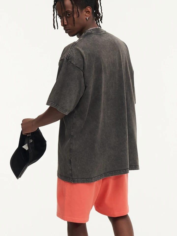 เสื้อยืดลายกราฟิกสำหรับผู้ชายเสื้อครอปถักลายการ์ตูนขนาดพิเศษ300กรัม