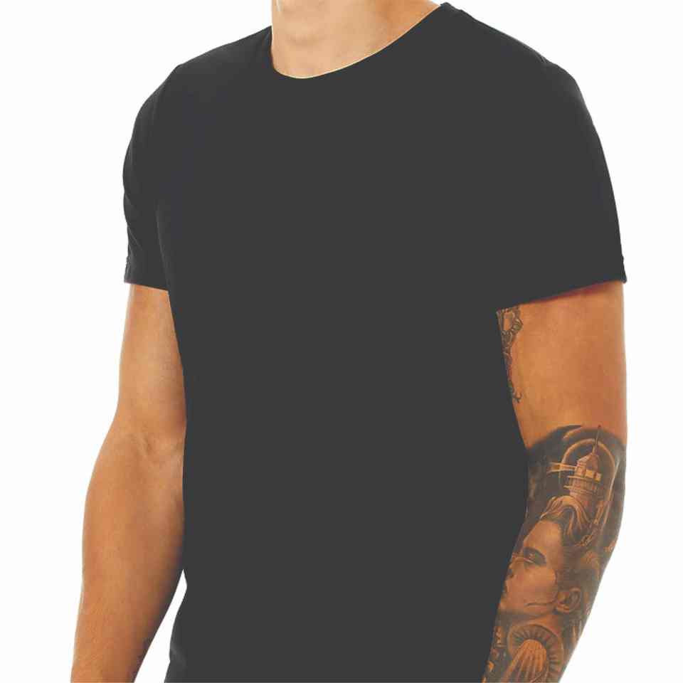เสื้อยืดแขนสั้นคอกลมคุณภาพสูงสำหรับผู้ชายดีไซน์คอกลมทรงเข้ารูปแฟชั่นผ้าคอตตอน100% ปักและพิมพ์ลายได้ตามต้องการ