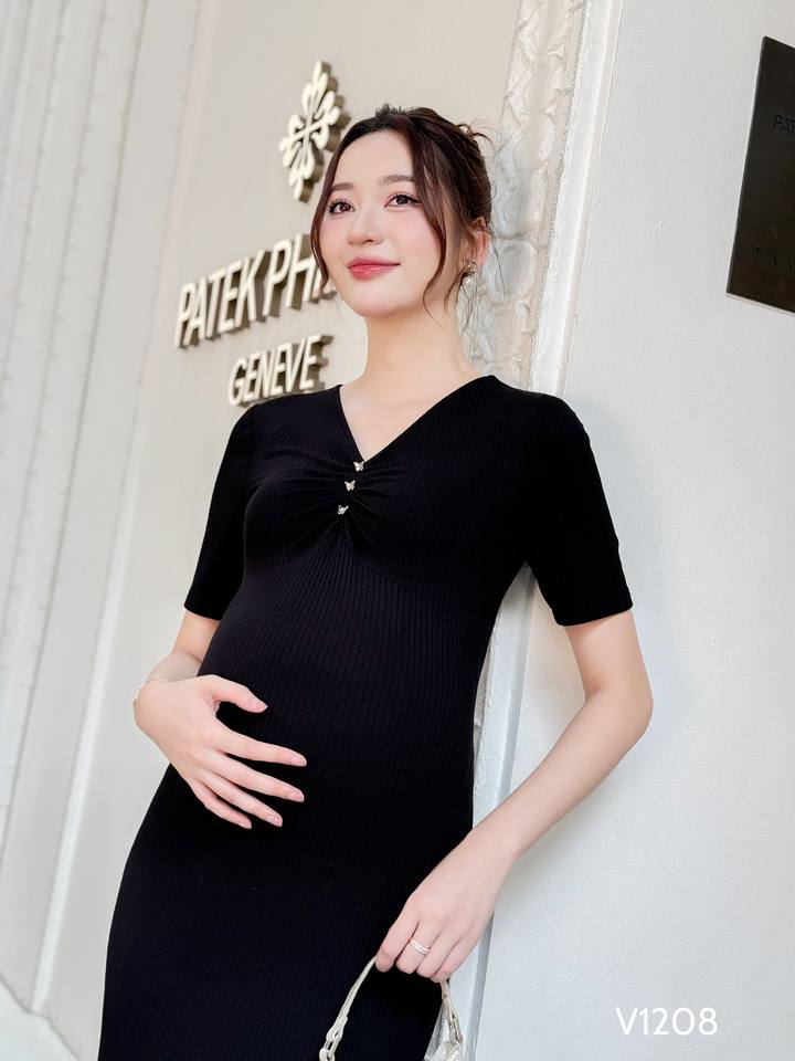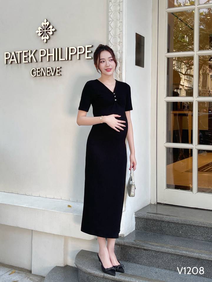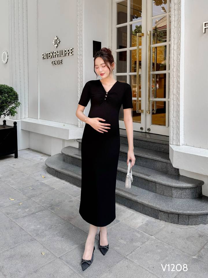 เสื้อผ้าคุณแม่ตั้งครรภ์เวียดนาม ODM ผ้าโพลีเอสเตอร์ดูดซับเหงื่อความยาวถึงเข่า V1208ป้องกันการหดตัว