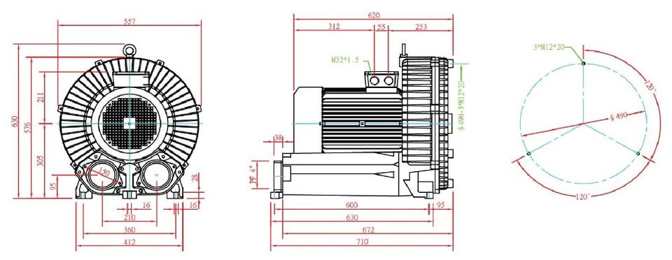 เครื่องเป่าสุญญากาศแบบ3เฟส60Hz เครื่องเป่าลม15Kw แรงดันสูง