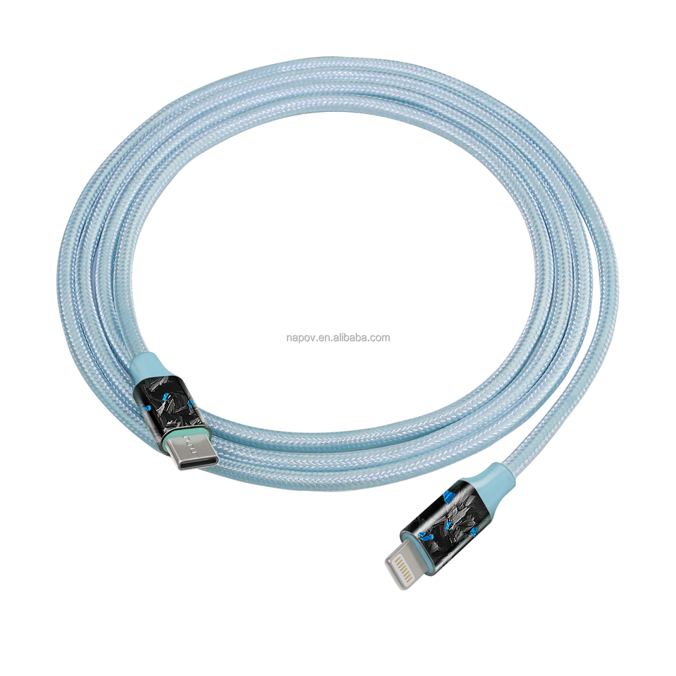 สายชาร์จและถ่ายโอนข้อมูล USB Type-C 5A ชาร์จเร็ว สำหรับ iPhone คุณภาพสูง OEM สีสันสดใส หุ้มด้วยคาร์บอนไฟเบอร์สีน้ำเงิน ถักด้วยไนลอน