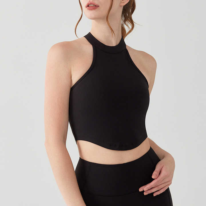 เสื้อกล้ามโยคะสำหรับผู้หญิงเสื้อกล้ามสำหรับเล่นฟิตเนสคอทรงสูงแห้งเร็วเนื้อนุ่มออกแบบโลโก้ได้ตามต้องการ
