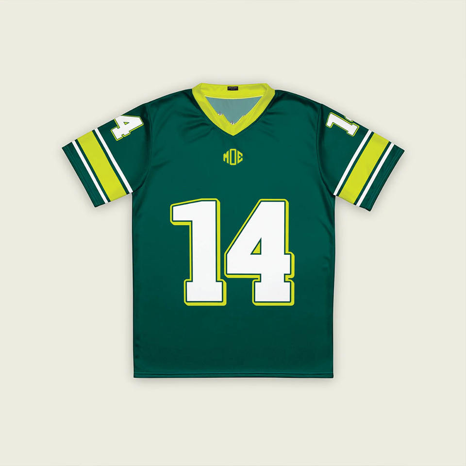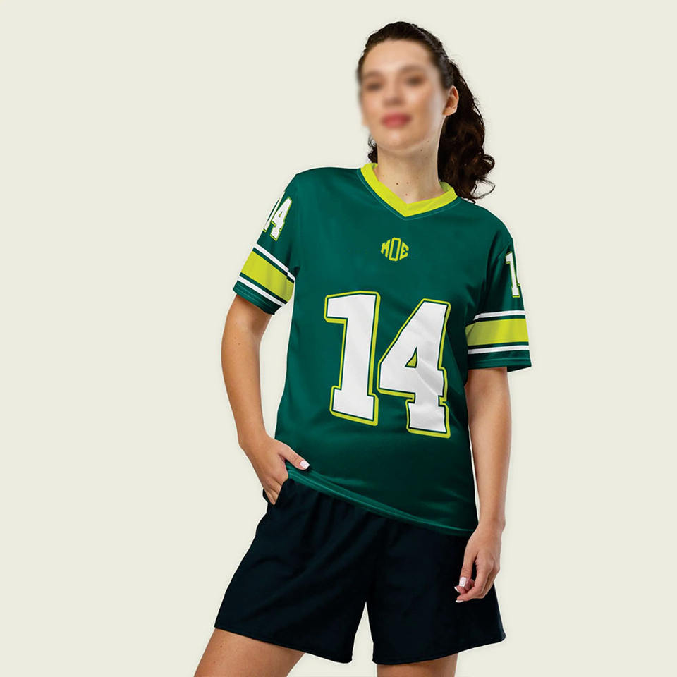 เสื้อฟุตบอลอเมริกันตาข่ายสีเขียวคุณภาพสูง OEM สำหรับทุกเพศ ระบายอากาศได้ดี เสื้อกีฬา สกรีนหมายเลขได้ตามต้องการ ชุดทีม ขายส่งจากสหรัฐอเมริกา