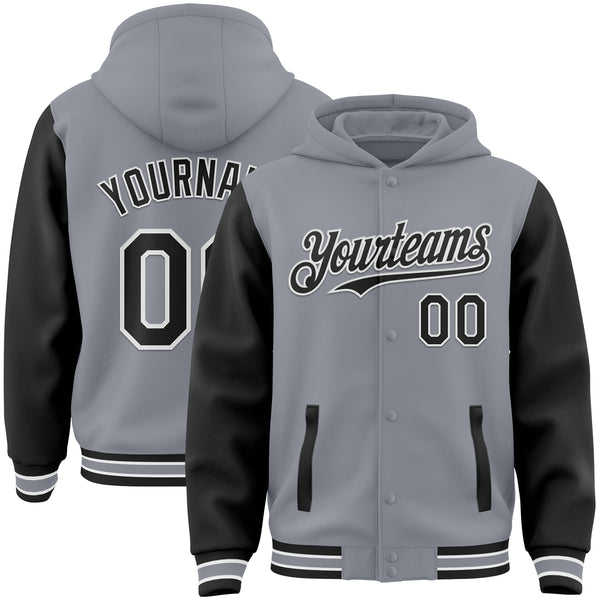 แจ็กเก็ตทีมโรงเรียนของผู้ชายพร้อมฮู้ดและแขนเสื้อหนังมีตัวอักษรแบบกำหนดเองสำหรับขนาดพิเศษ