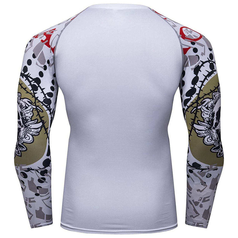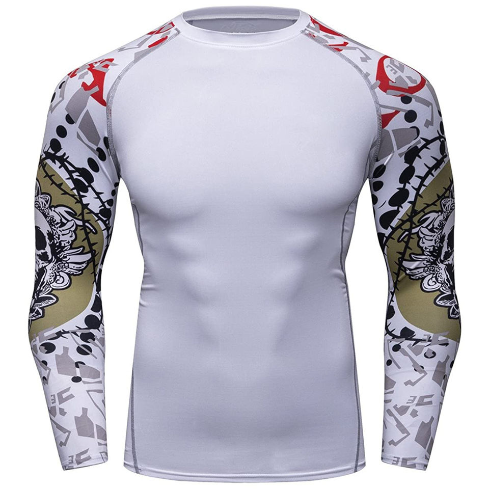 เสื้อแรชการ์ดแขนยาวสำหรับผู้ชายชุดป้องกันผื่นสำหรับฟิตเนสแนบเนื้อ