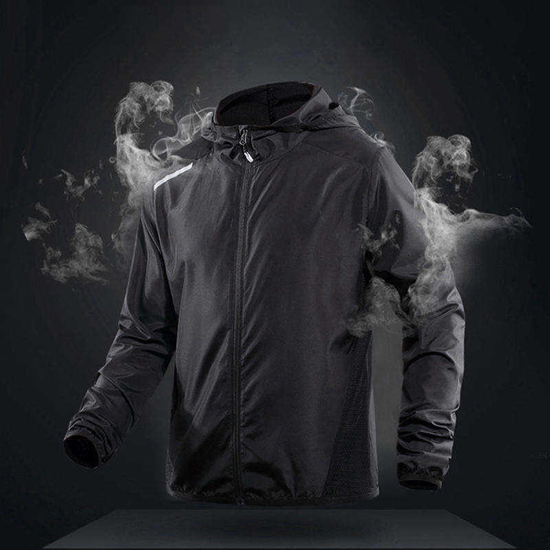 แจ็กเก็ตกันลมมีฮู้ดสำหรับผู้ชายเสื้อแจ็กเก็ตกลางแจ้งแบบบางสำหรับใส่วิ่งฤดูร้อนออกแบบได้ตามต้องการ