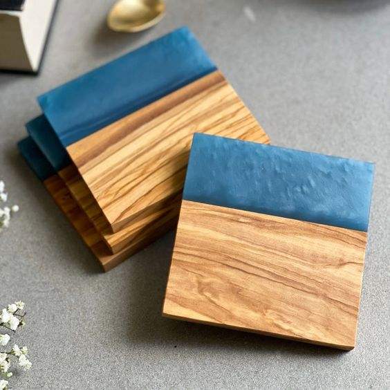 ชุดจานรองแก้วเรซินรูปคลื่นทะเลคุณภาพสูงทำด้วยมือศิลปะสีฟ้าชายฝั่งของขวัญที่เหมาะสำหรับคนรักชายหาดและของตกแต่งโต๊ะที่ทันสมัย