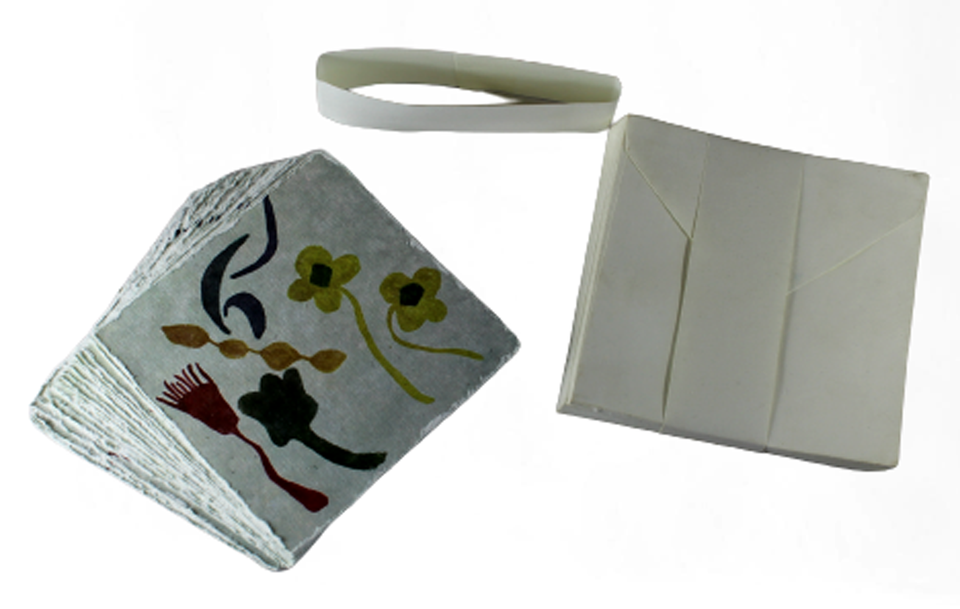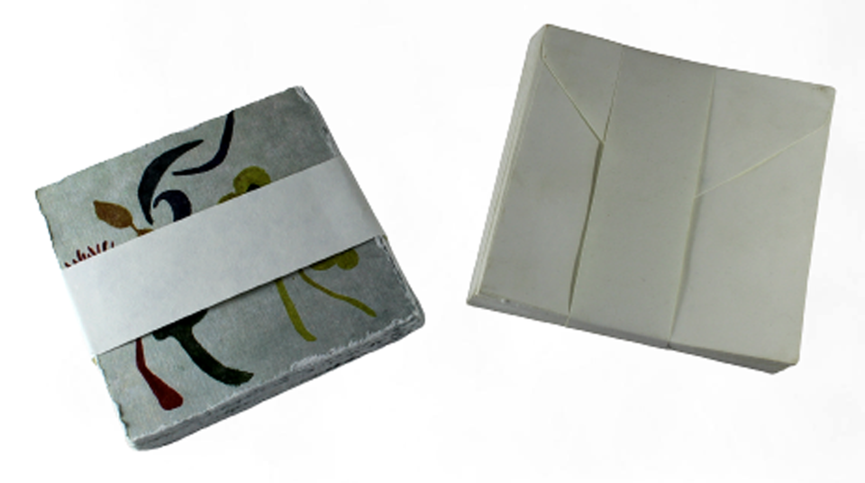 การ์ดพิมพ์ออฟเซ็ตคุณภาพสูงบนกระดาษทำมือ ปรากฏให้เห็นลายเหมือนวาดด้วยสีน้ำ ของใช้บนโต๊ะทำงานและการ์ดที่เป็นมิตรกับสิ่งแวดล้อมอย่างแท้จริง