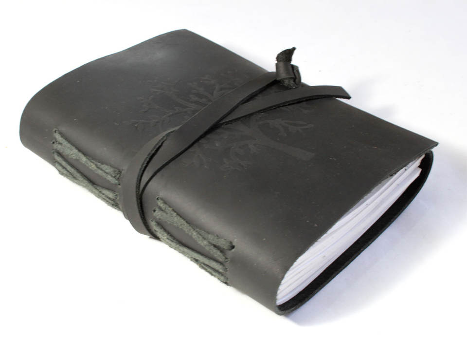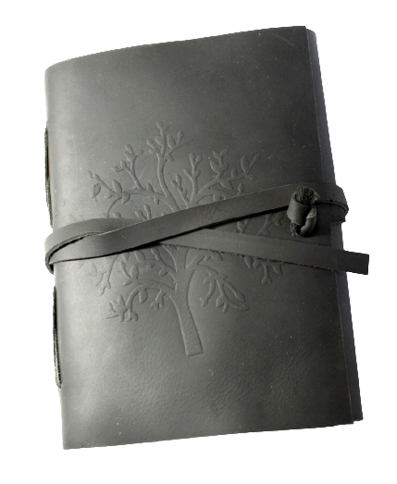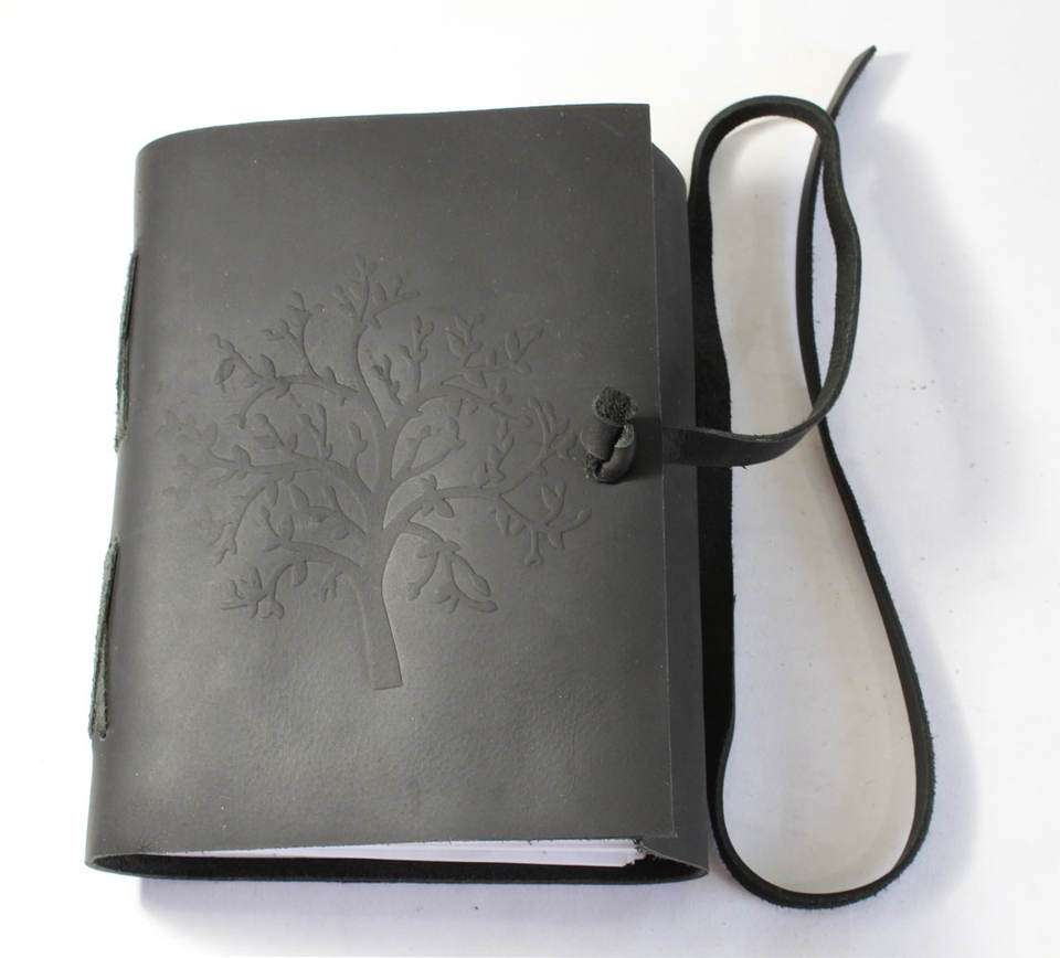 ปกสมุดบันทึกหนังลายนูนลายต้นไม้แห่งชีวิตคุณภาพสูง สีดำด้านหน้า พร้อมสายคล้องเข้าชุด ขายส่ง