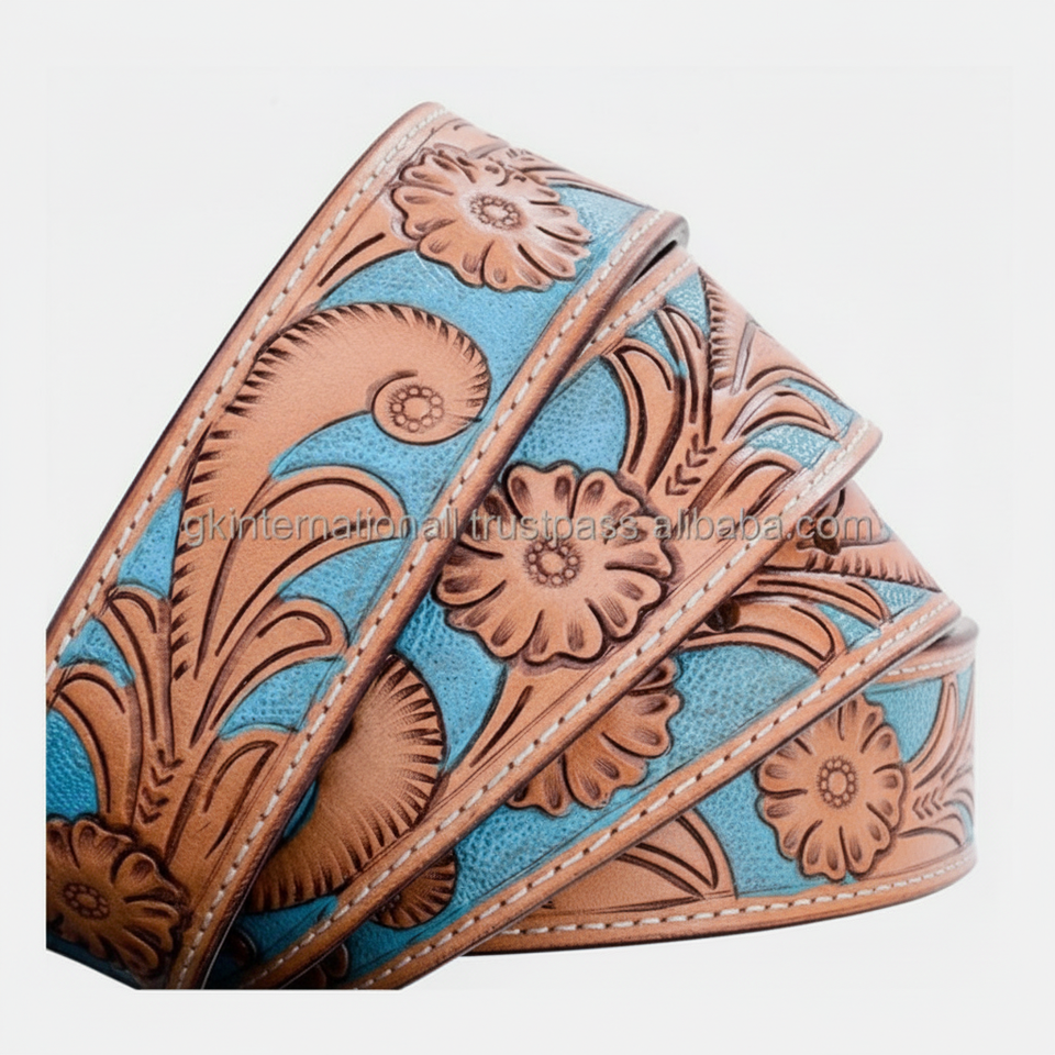 เข็มขัดก่อสร้างชั้นเดียวเข็มขัดหนังตะวันตกสลักลายนูนลายดอกไม้