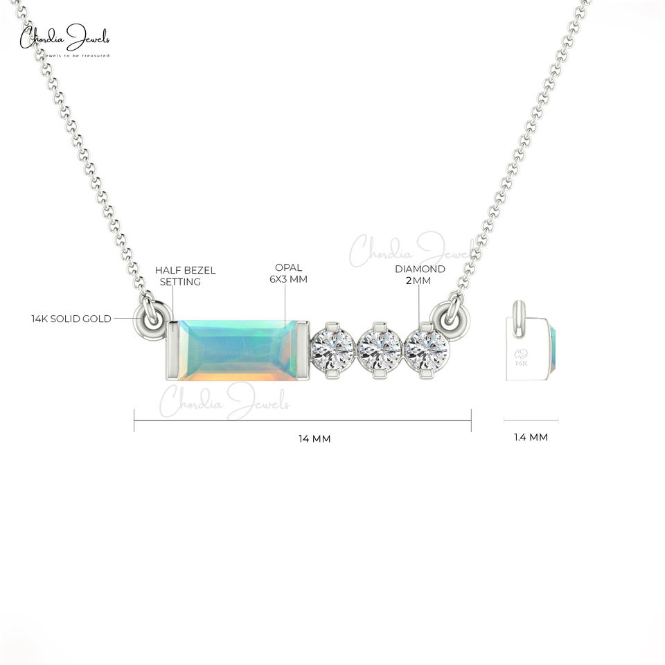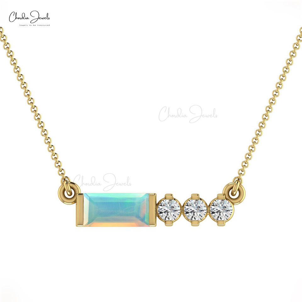 คุณภาพสูงโอปอลเพชร Accented สร้อยคอ 6X3 มม.Baguette ตัดอัญมณี 14K ทอง BEZEL ชุดเครื่องประดับผู้ส่งออกจากอินเดีย