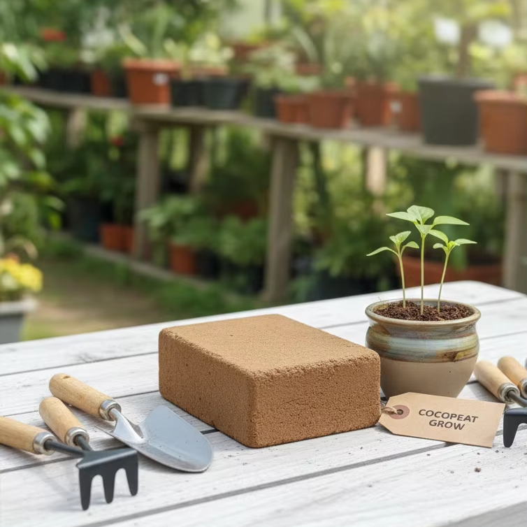 ก้อนมะพร้าวอินทรีย์คุณภาพสูง 5 กก. ค่า EC ต่ำ <0.5 ช่วยกักเก็บน้ำได้ดี เหมาะสำหรับการปลูก