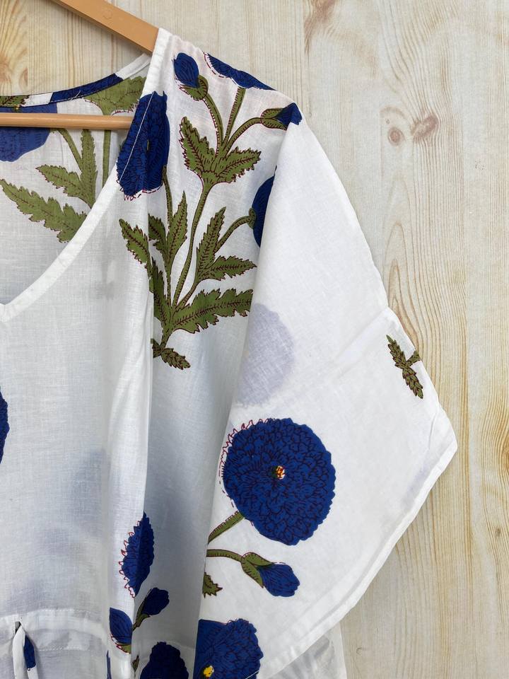 ชุดคลุมผ้าฝ้ายออร์แกนิคคุณภาพสูงสำหรับผู้หญิง พิมพ์ลายด้วยมือ คอวี ชุดนอน ชุดลำลอง ชุดเที่ยวพักผ่อน ช่วงฤดูใบไม้ร่วง เอวยางยืด