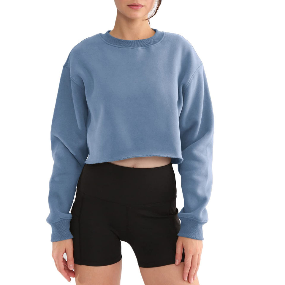 เสื้อสเวตเตอร์คอกลมแขนยาวผ้าฝ้ายออร์แกนิคสำหรับผู้หญิงเสื้อครอปพิมพ์โลโก้ตามสั่งสำหรับฤดูหนาว