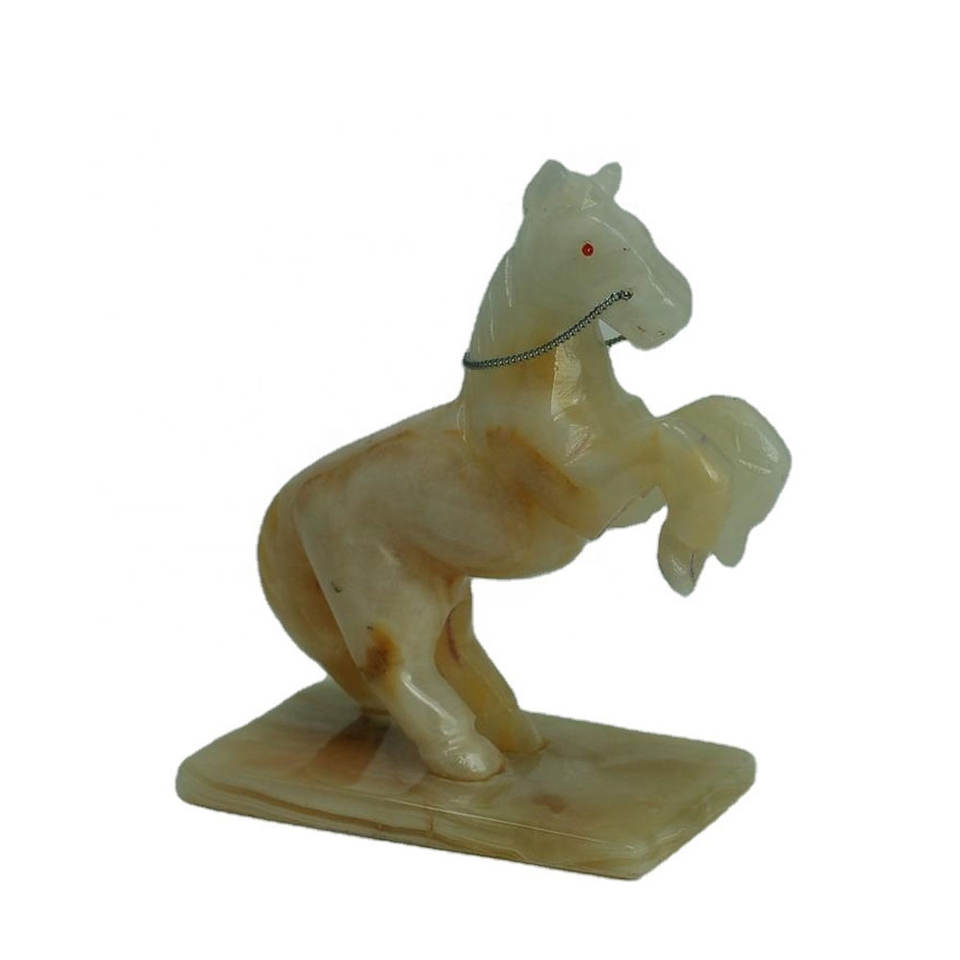 งานแกะสลักม้าจากวัสดุออร์แกนิกคุณภาพสูง ทำจากหินออนิกซ์ขัดเงา ผลงานชิ้นเอกที่มีลวดลายสีเหลืองสวยงาม ศิลปะพื้นบ้าน
