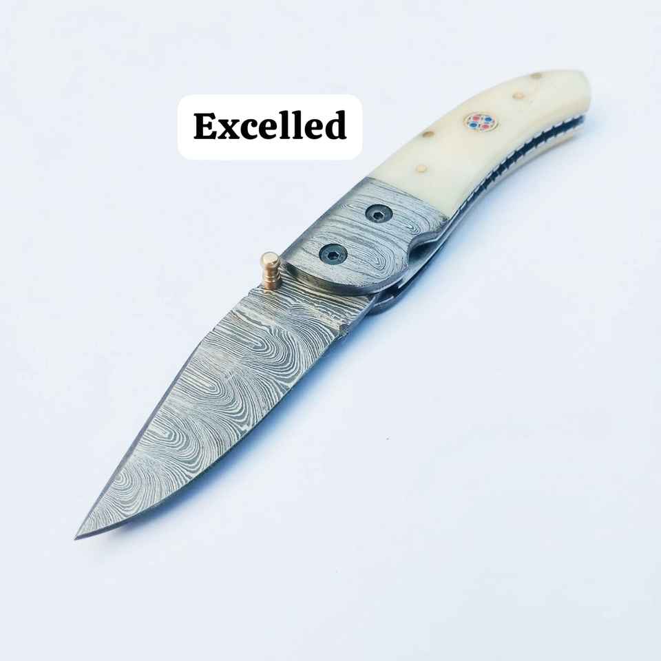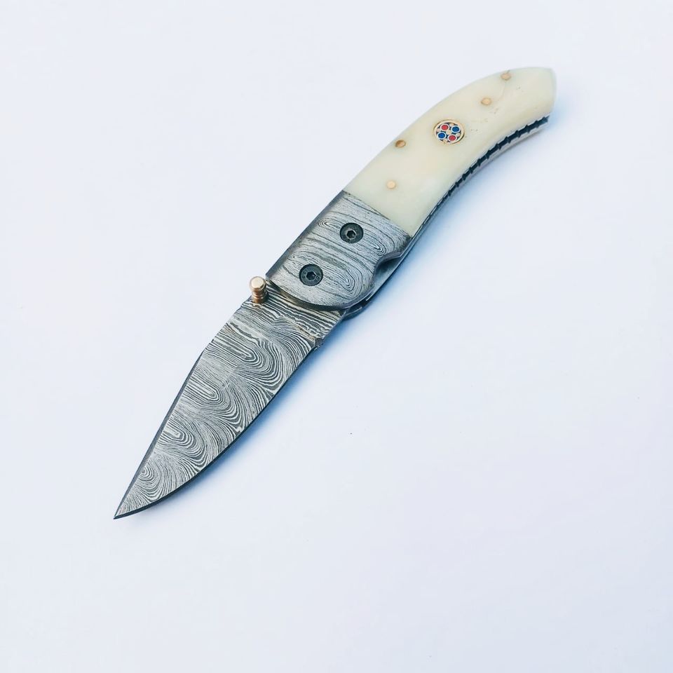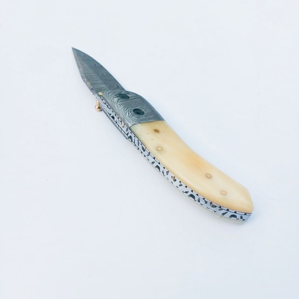 มีดพับคุณภาพสูงสำหรับการล่าสัตว์และตั้งแคมป์กลางแจ้ง ใบมีดเหล็กดามัสกัส เปลี่ยนใบมีดได้รวดเร็ว ด้ามจับทำจากกระดูกอูฐธรรมชาติ มีดพกพาสำหรับเอาตัวรอด