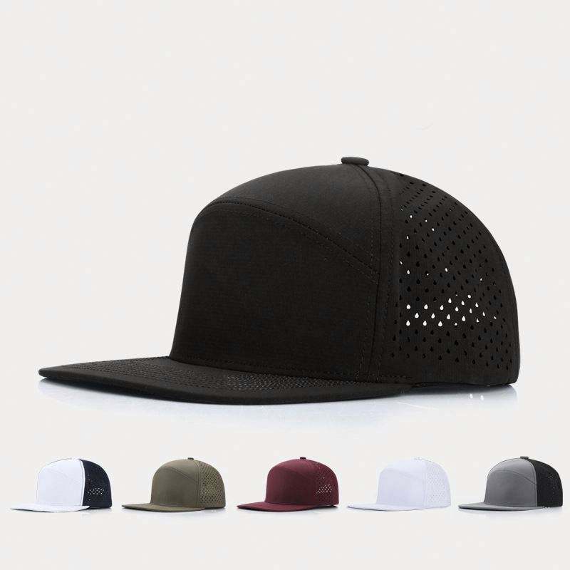 หมวกเบสบอลกีฬากลางแจ้งคุณภาพสูง กันน้ำ แบบ Snapback ตัดด้วยเลเซอร์ 7 ช่อง แบบ Snapback