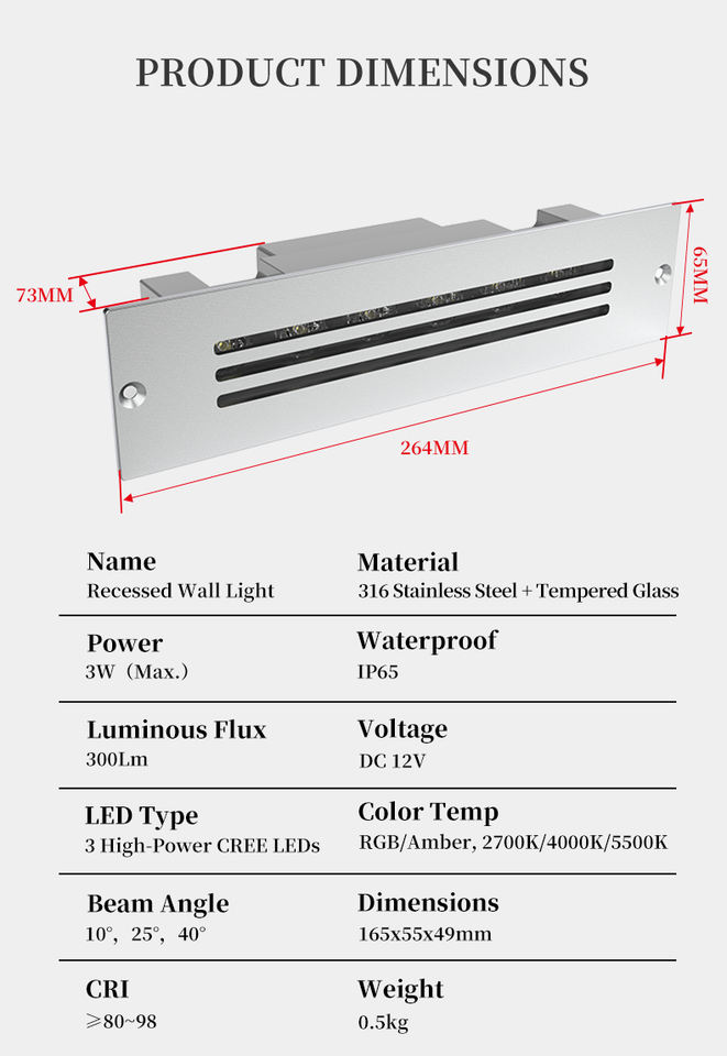 ไฟส่องบันไดคุณภาพสูง Overseasdesign รุ่น RW-260 กระจกนิรภัย 500 ลูเมน ใช้ไฟ DC12V เหมาะสำหรับโรงแรม ทางเดินบันได รับสั่งทำตามขนาด ปริมาณน้อยก็สั่งได้
