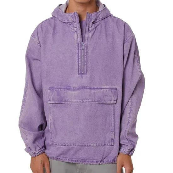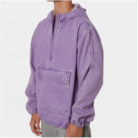 เสื้อฮู้ดผ้ายีนส์สไตล์สตรีทแบบรูดซิปสำหรับผู้ชายผ้าคอตตอน100% โอเวอร์ไซส์ปรับแต่งได้สำหรับฤดูหนาว