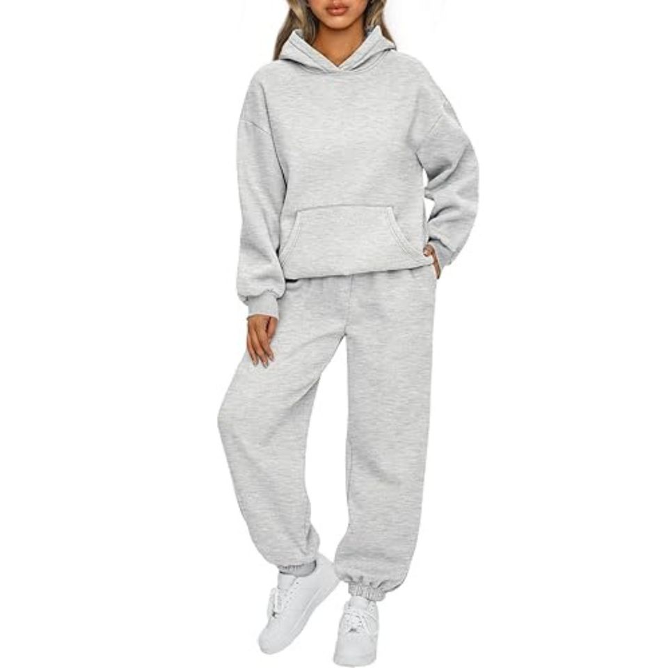 ชุดเสื้อนอกมีฮู้ด2ชิ้นโอเวอร์ไซส์ของผู้หญิงสำหรับใส่ในเลานจ์ฤดูหนาวผ้าทอแฟชั่นฤดูใบไม้ร่วงระบายอากาศได้ดี