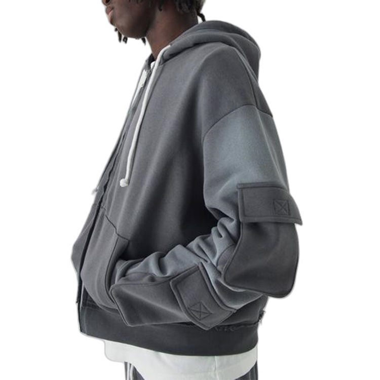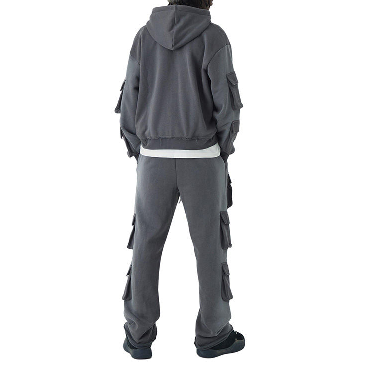 ชุดแทรคสูทผู้ชายทรงบ็อกซี่โอเวอร์ไซส์คุณภาพสูง ล้างสีแบบแอซิด ซิปหน้า มีกระเป๋าหลายช่อง พร้อมเชือกผูก