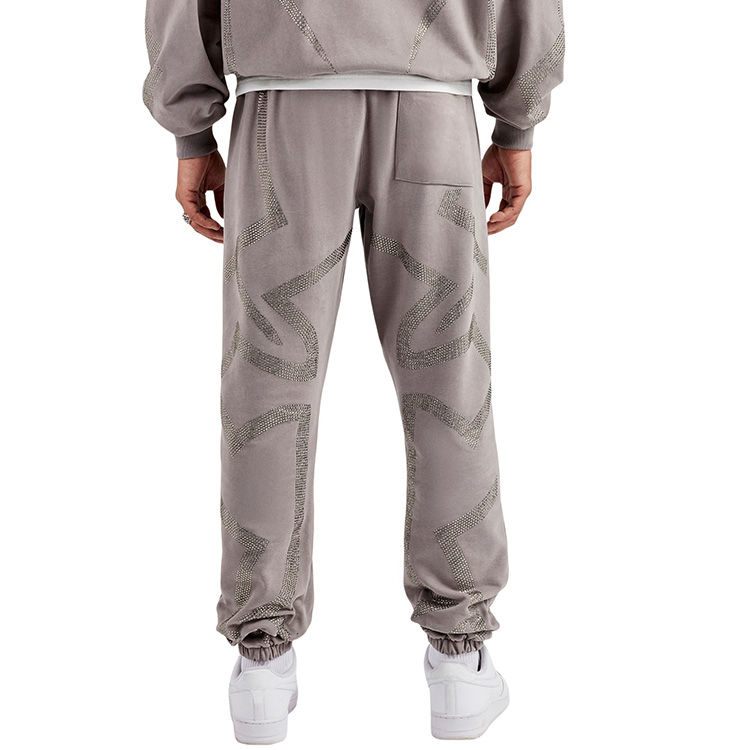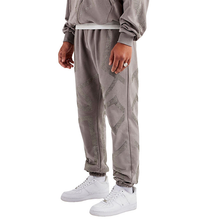 ชุดแทรคสูทผู้ชายทรงจ็อกเกอร์แบบมีฮู้ด ซิป แต่งคริสตัลรูปกากบาท ขอบยางยืด กระเป๋าทรงบ็อกซี่ขนาดใหญ่ ผ้าฟอก คุณภาพสูง