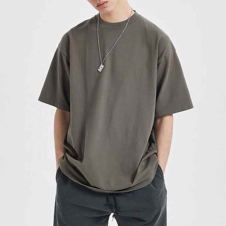 เสื้อยืดคอกลมเปิดไหล่สำหรับผู้ชายเสื้อยืดลายกราฟสีตกไซส์ใหญ่พิเศษเสื้อยืดคอกลมใส่สบาย