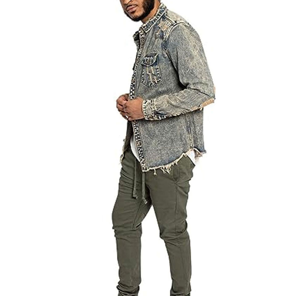แจ็กเก็ตยีนส์ย้อมสีล้วนสำหรับผู้ชายเสื้อแจ็กเก็ตยีนส์ลำลองแฟชั่นโอเวอร์ไซส์สำหรับผู้ชาย