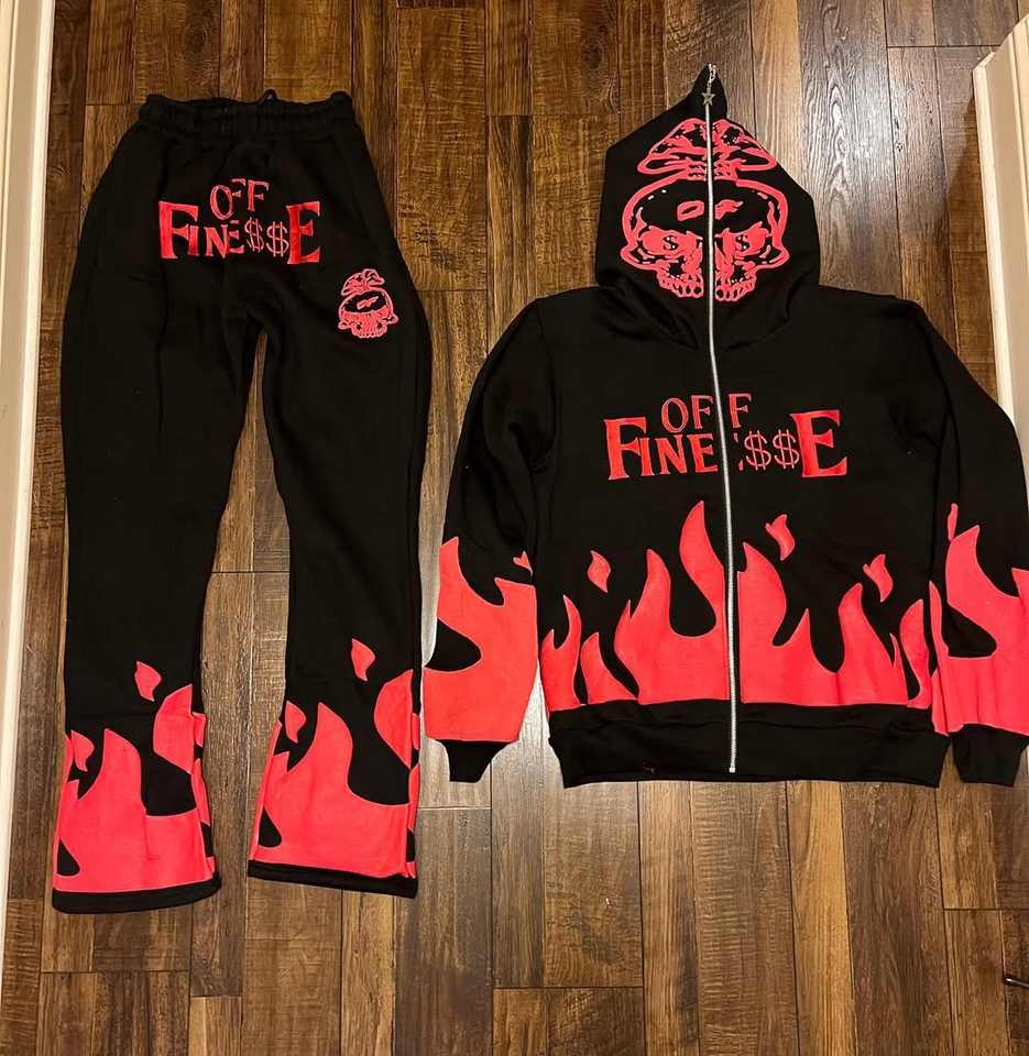 ชุดวอร์ม2ชิ้นสำหรับผู้ชายกางเกงและฮู้ดโอเวอร์ไซส์ผ้าคอตต้อนปักลาย
