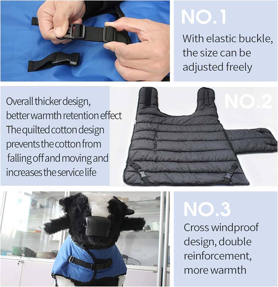 เสื้อคลุมป้องกันหนังวัวคุณภาพสูง ผ้าอ๊อกซ์ฟอร์ดหนา กันลมบริเวณท้องและลำคอ พร้อมกระดุมคู่ สำหรับปศุสัตว์ ไซส์ใหญ่