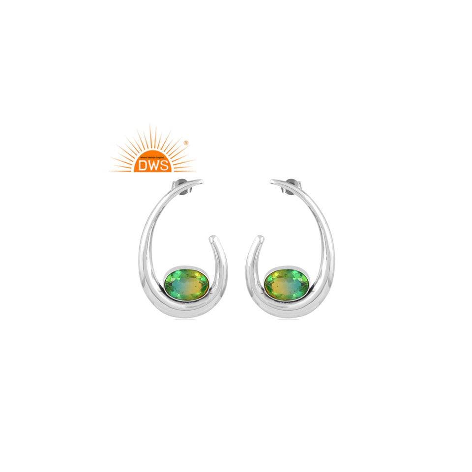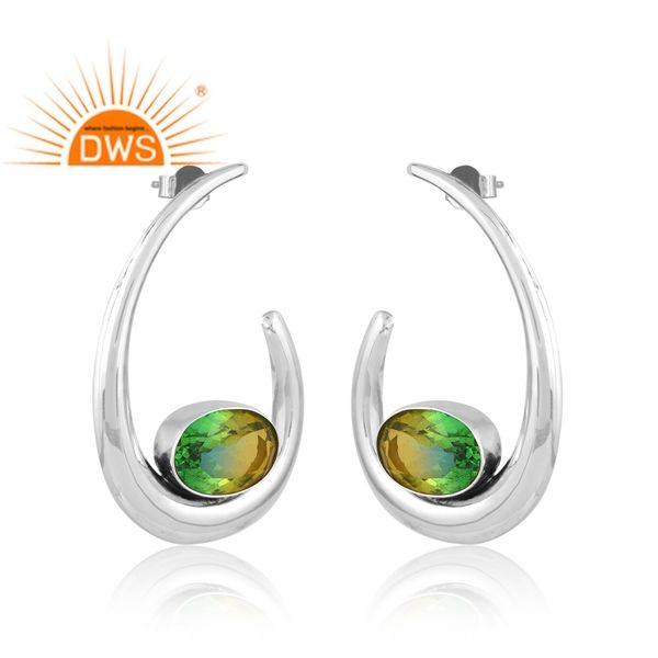 ต่างหูควอตซ์ไดออปไซด์แบบคู่ทำจากเงินแท้สีออกซิไดโอด