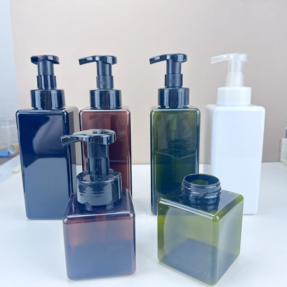 High Quality PET Foam Plastic Bottles 250/450/650ml Square Mousse Bubble Effect Screen Printed Hand Sanitizer Laundry Detergent