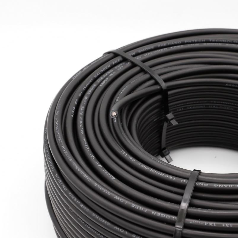 สายเคเบิลพลังงานแสงอาทิตย์ DC PV คุณภาพสูง PNTECH สีดำแดง XLPO แกนเดี่ยว 62930 IEC131 ขนาด 1*4.0 มม.
