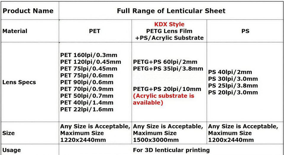 ชื่อผลิตภัณฑ์:แผ่น3D lenticular