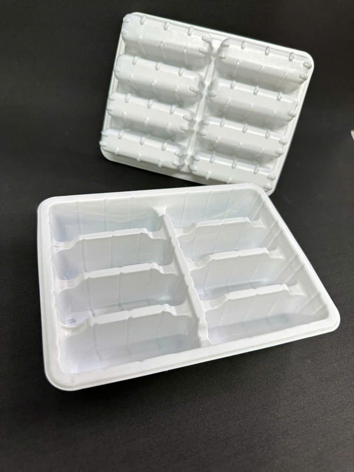 ถาดพลาสติก PP/PET สีขาวนมแบบใช้แล้วทิ้งบรรจุภัณฑ์แบบสมบูรณ์พร้อมบริการ OEM/ODM ที่ครอบคลุม