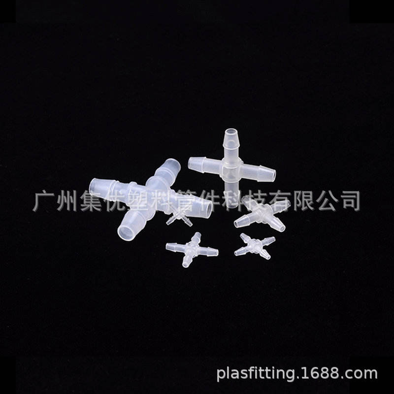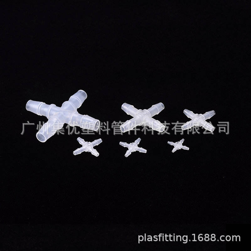 อุปกรณ์ท่อส่งของเหลวแบบไขว้สี่ด้าน คุณภาพสูง ผลิตจากพลาสติก PP ข้อต่อซิลิโคนแบบนิ่ม หกทาง สำหรับท่อน้ำและท่อแก๊ส