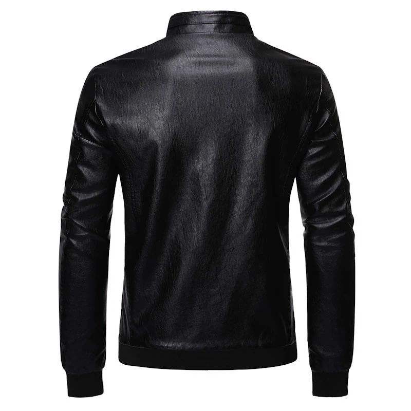 แจ็กเก็ตหนัง PU สำหรับผู้ชายเสื้อแจ็คเก็ตแฟชั่นสำหรับผู้ชายคอตั้งสีพื้นสำหรับฤดูใบไม้ผลิฤดูใบไม้ร่วง