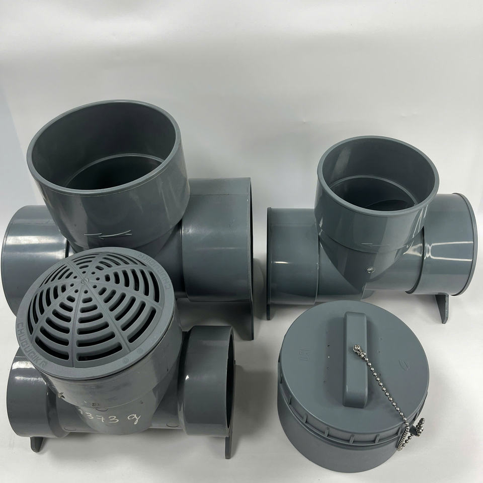 ขั้วต่อทีท่อพีวีซีพร้อมฝาปิดและที่กรองสำหรับระบบระบายน้ำโรงงาน oM/odm ขายส่งจากเวียดนาม
