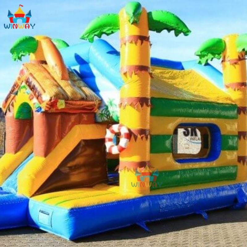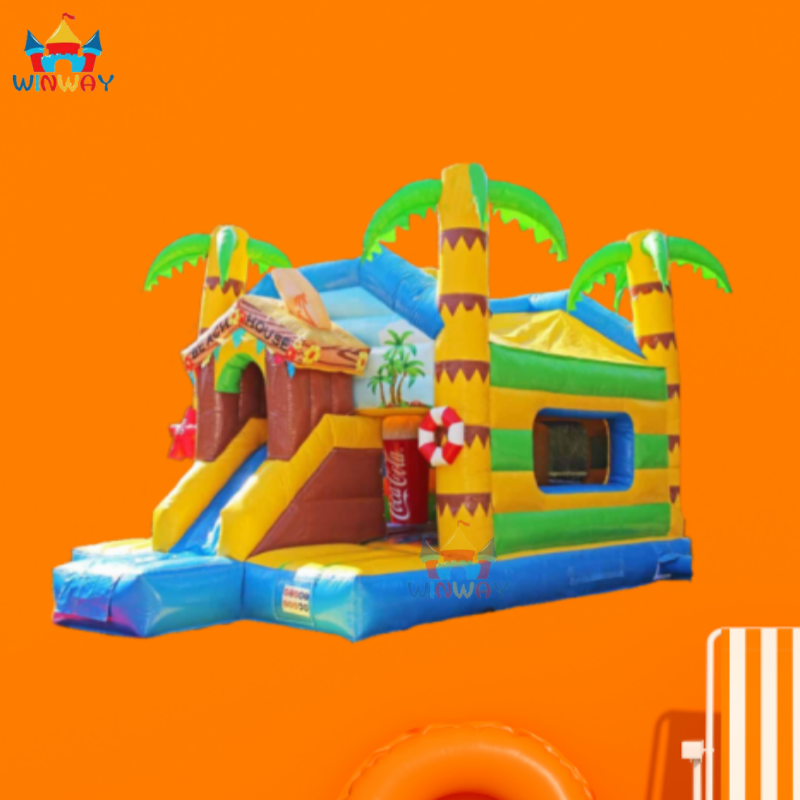บ้านลมเป่าลมรูปต้นปาล์มป่าเขตร้อนคุณภาพสูง PVC พร้อมสไลเดอร์ ติดตั้งง่าย ขนาด 6x4x5 เมตร WINWAYTOYS สำหรับเชิงพาณิชย์