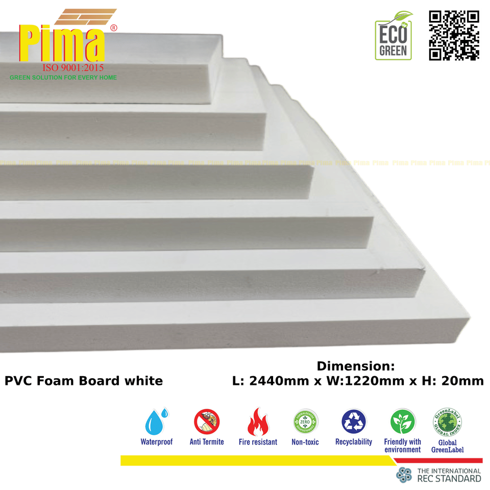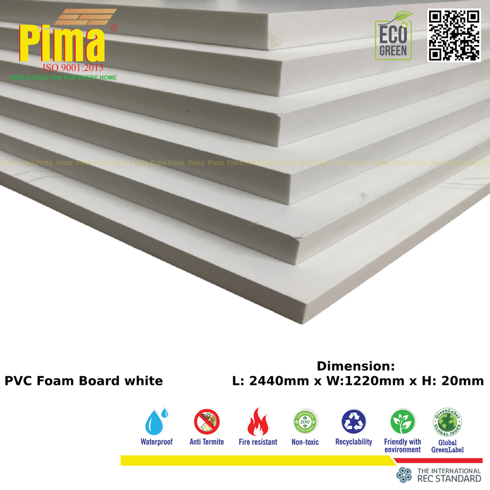 แผงโฟมพีวีซี WPC คุณภาพสูงความหนา20มม. 0.6กรัม/สีขาวความหนาแน่น cm3ใช้สำหรับห้องนอนเฟอร์นิเจอร์พื้นผิวครัว