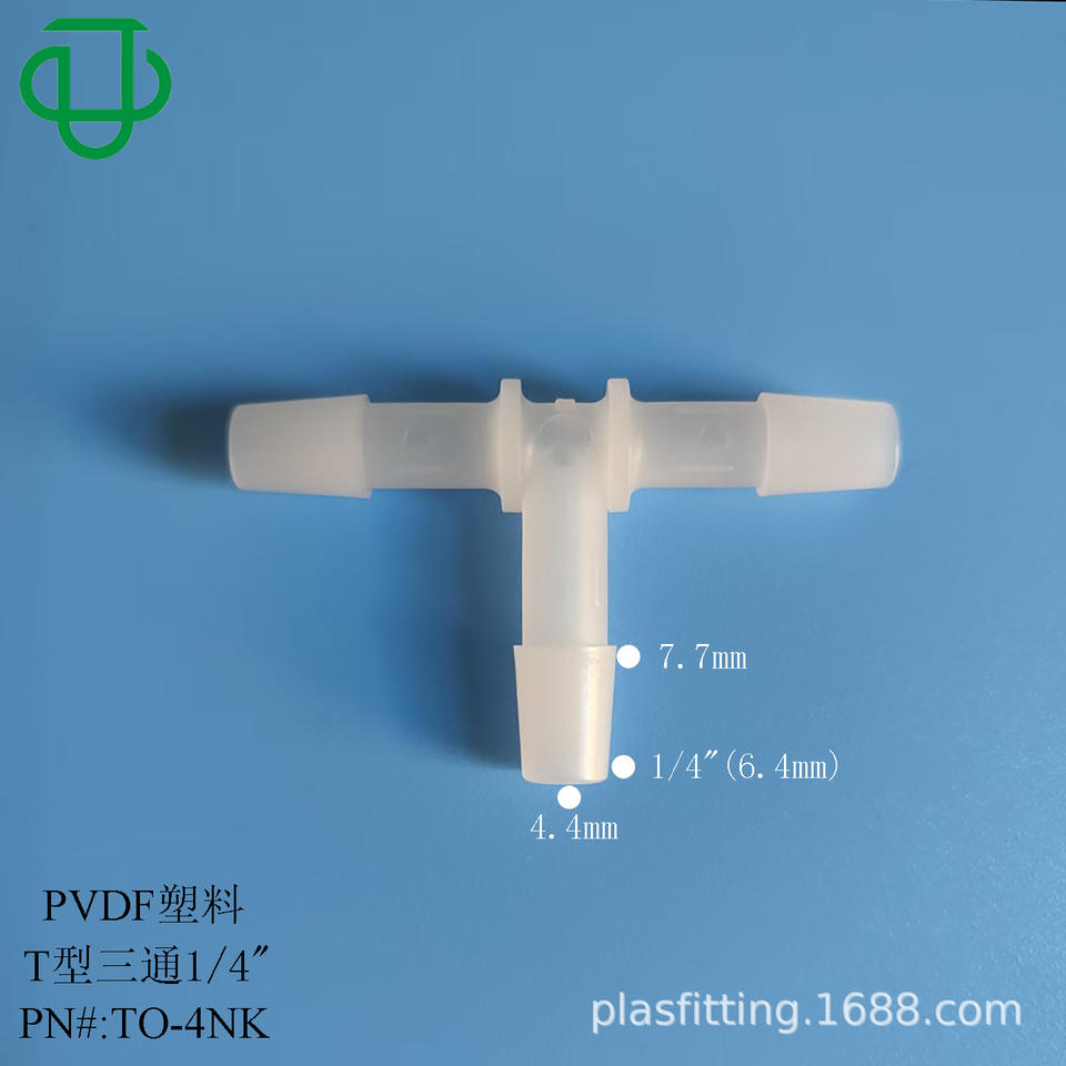 ข้อต่อพลาสติก PVDF คุณภาพสูง รูปตัว T แบบ Pagoda ขนาดเส้นผ่านศูนย์กลางเท่ากัน พร้อมหนาม ทนกรด/ด่าง ทนอุณหภูมิสูง
