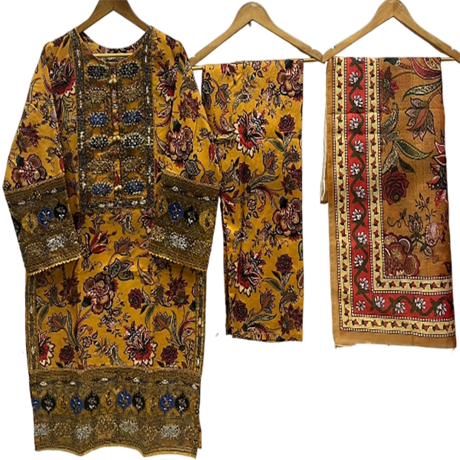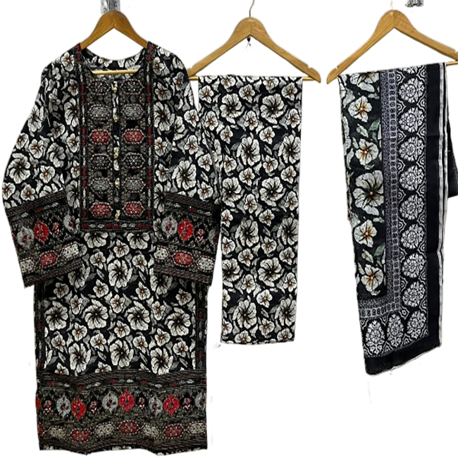 ชุดเดรสสำเร็จรูปผ้าฝ้ายปักลายคุณภาพสูงจากปากีสถานสำหรับผู้หญิง ไซส์พลัส ชุดเดรส 3 ชิ้นคุณภาพสูง