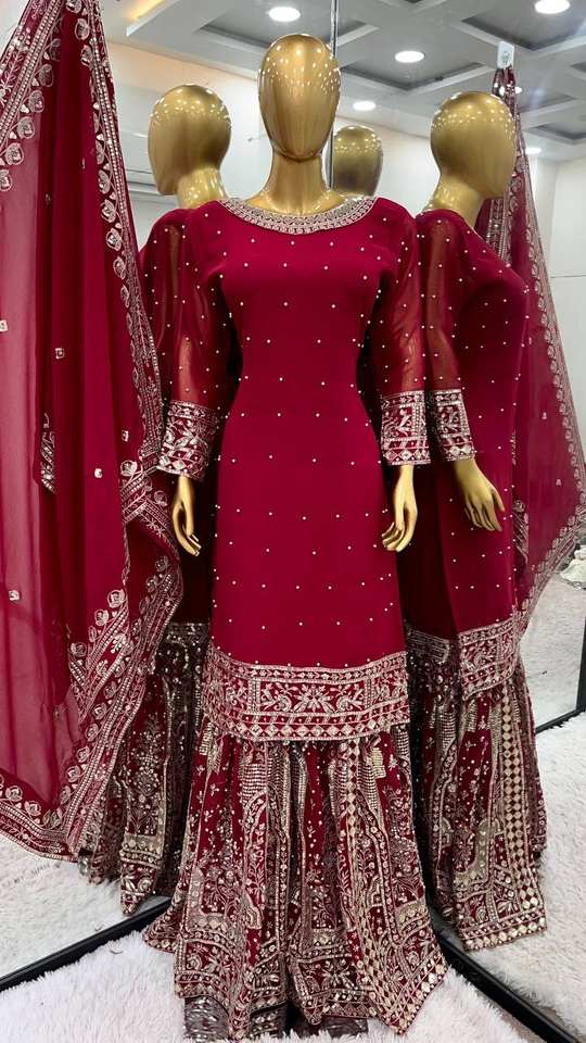 ชุดส่าหรีแบบปากีสถานคุณภาพสูง พร้อมงานปักอย่างดี เหมาะสำหรับงานเลี้ยงพิเศษ ดีไซน์ใหม่ สีแดง สำหรับผู้หญิง